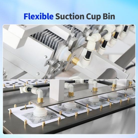 Produk yang berbeza memerlukan mekanisme pengendalian yang berbeza. BCP-500G boleh menyesuaikan konfigurasi cawan sedutan untuk memastikan kedudukan optimum dan sedutan dan penempatan dalam pelbagai aplikasi pembungkusan kad lepuh.