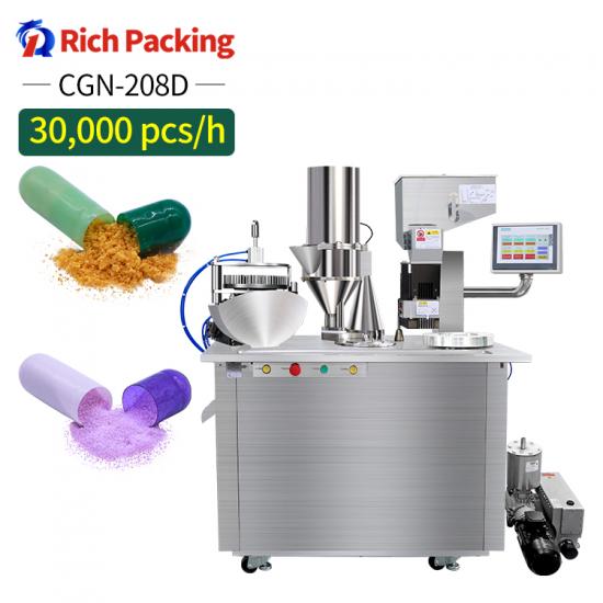 CGN-208D RichPacking mesin pengisian kapsul separa automatik , yang dibina untuk mengisi serbuk dan pelet ke dalam kapsul berongga bersaiz 000 hingga 5, telah mendapat populariti yang besar di lebih 80 negara di seluruh dunia terutamanya disebabkan oleh faedah penting berikut yang ditawarkan: