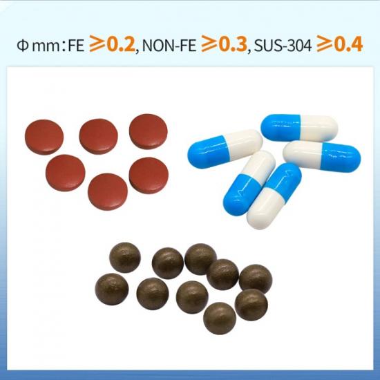 Kepekaan tinggi pengesan logam adalah salah satu kelebihan teras mereka. Mereka boleh mengesan zarah logam yang sangat kecil, seperti ferus ≥ 0.4 mm, bukan ferus ≥ 0.8 mm, dan keluli tahan karat ≥ 1.0 mm. Keupayaan ini membolehkan prestasi cemerlang semasa memeriksa produk bersaiz kecil seperti tablet dan kapsul. Dalam industri farmaseutikal, tablet dan kapsul biasanya kecil dengan struktur dalaman yang kompleks; kehadiran bahan cemar logam boleh menjejaskan kualiti dan keselamatan produk dengan teruk. Pengesan logam mengesan dengan tepat zarah logam kecil ini, memastikan keselamatan dan keberkesanan dadah.