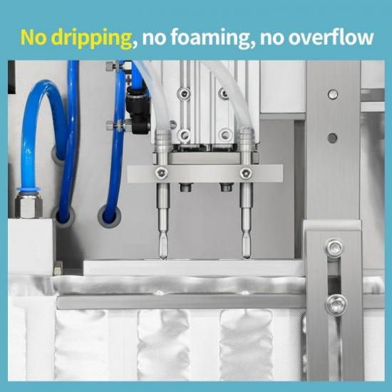Masukkan kepala isi ke dalam mulut botol (atau gunakan isian bukan sentuhan untuk mengelakkan pencemaran) dan suntikan bahan mengikut dos yang telah ditetapkan. Penderia aras cecair memantau isipadu pengisian dalam masa nyata, dan sistem akan dihentikan dan dilaraskan serta-merta jika keabnormalan berlaku. Pengedap dan Pengawetan: