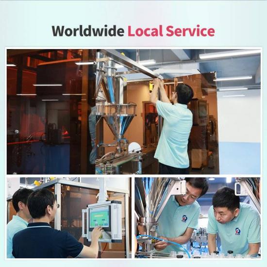 Jangkauan global Rich Packing digabungkan dengan perkhidmatan setempat adalah kekuatan teras. Syarikat kami menyediakan profesional serbuk mengisi pembungkusan mahine pasukan pemasangan untuk pelanggan di seluruh dunia. Pasukan ini mempunyai pengalaman yang luas di tapak dan boleh memasang peralatan dengan cekap mengikut persekitaran pengeluaran dan susun atur khusus pelanggan. Selepas pemasangan, pasukan menjalankan pentauliahan menyeluruh untuk memastikan semua metrik prestasi peralatan dioptimumkan, menjamin ketepatan pengisian dan kelajuan pengeluaran memenuhi atau melebihi spesifikasi reka bentuk.