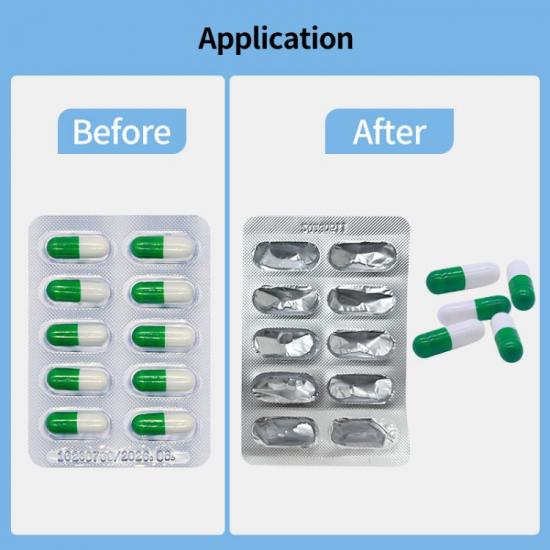 1. Pengeluaran farmaseutikal: Dalam barisan pengeluaran farmaseutikal, mesin DeBlister digunakan untuk mengawal kualiti ubat. Jika sesuatu ubat didapati rosak atau tidak dibungkus dengan betul dalam bungkusan lepuh, mesin kapsul DeBlister boleh digunakan untuk mengeluarkan ubat dengan cepat dan tepat daripada bungkusan dan kemudian menggunakan semula atau memusnahkannya.